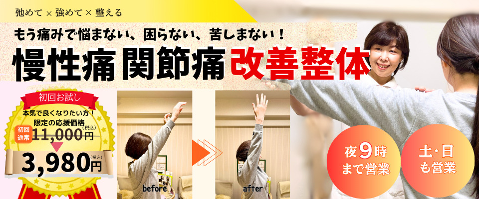 その間、ひたすらに勉強と練習を重ね、膝痛・五十肩・股関節痛・慢性腰痛・腱鞘炎・脚の痺れ・顎関節症など今まで多くの方の慢性痛を改善してきました。